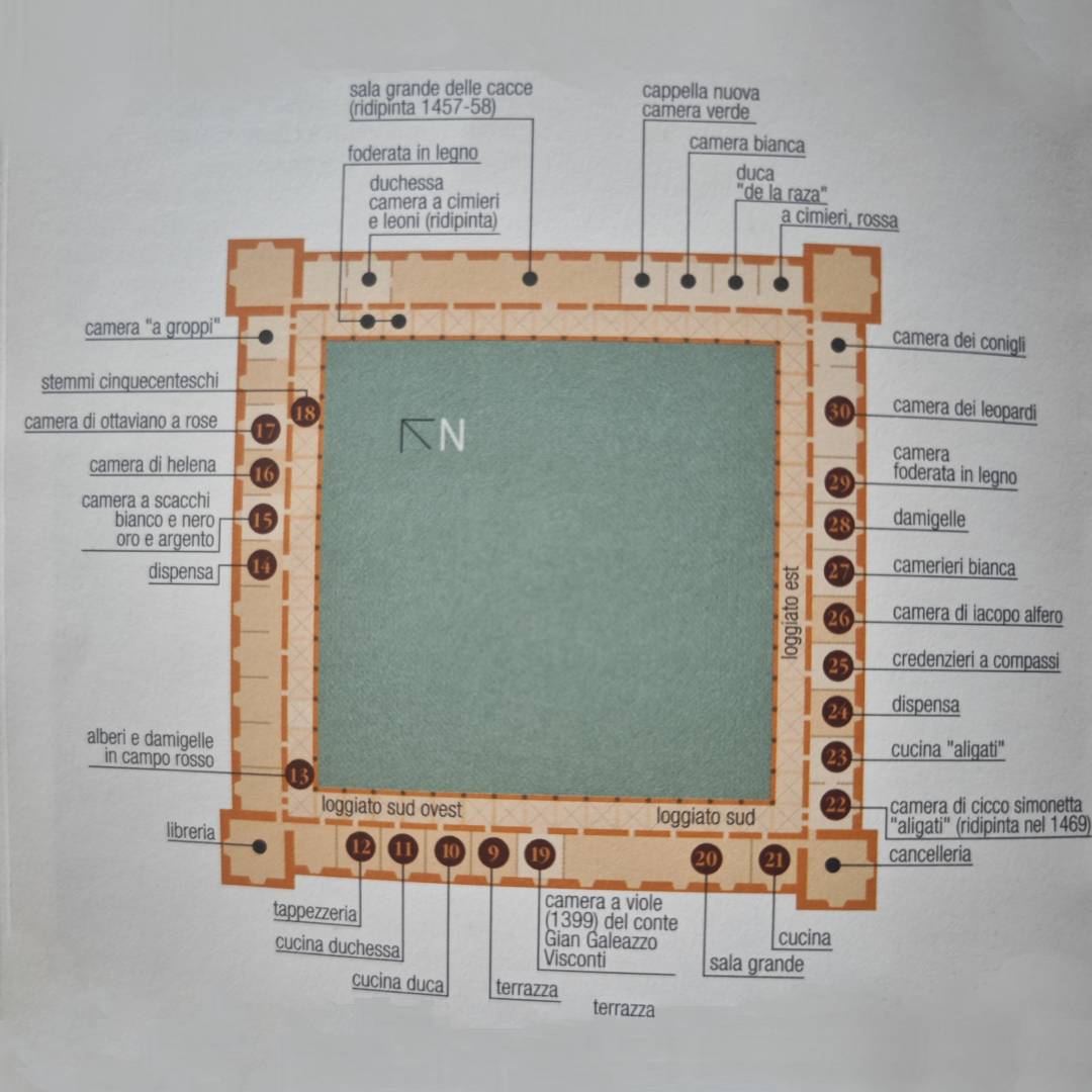 L’ala nord doveva essere quella più prestigiosa e più riccamente decorata di tutto il castello, adibita agli appartamenti ducali.
